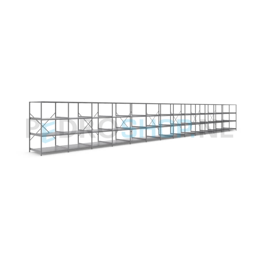 Metalen stellingkast: 180cm (h) x 100cm (d) x 1412cm (l)