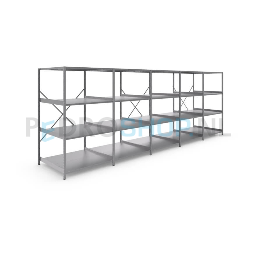 Metalen stellingkast: 180cm (h) x 100cm (d) x 506.6cm (l)