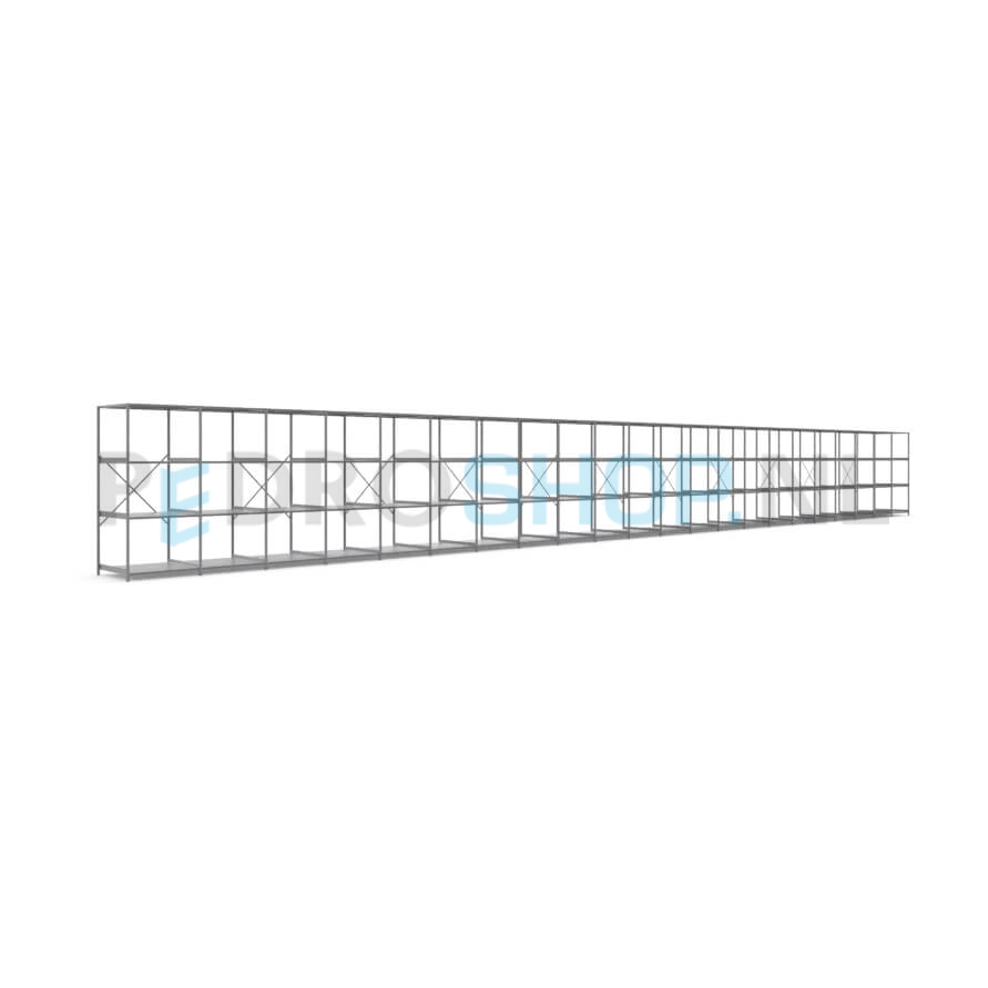 Metalen stellingkast: 230cm (h) x 100cm (d) x 2216.8cm (l)