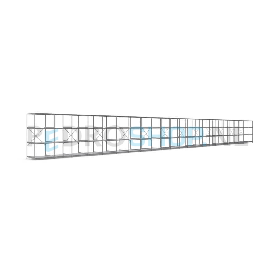 Metalen stellingkast: 230cm (h) x 100cm (d) x 2317.4cm (l)