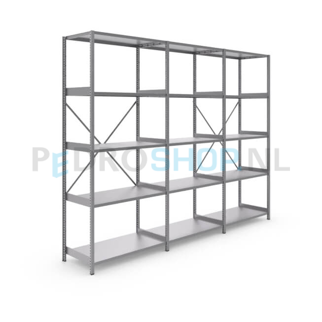 Met de GS-3 metalen stelling voor uw garage, magazijn of showroom kiest u voor een hoogwaardige kwaliteit metalen / ijzeren stellingkast. De GS-3 stijlen, GS-3 dragers, metalen GS-3 legborden en vele accessoires van de GS3 magazijnstelling worden gemaakt van hoogwaardig thermisch verzinkt staal (sendzimir). Kwaliteit gegarandeerd! De standaard onderdelen van de metalen GS3 stellingkasten zijn binnen enkele dagen leverbaar. Stel nu uw metalen magazijn rek stelling samen via onze handige configurator. In een aantal stappen kunt u online uw metalen stellingkast bestellen. Heeft u een groot magazijn in te richten met metalen legbord stellingen? Wij maken graag een passende offerte. Koop uw metalen rekken en stalen stellingen online bij Stellingspecialist.