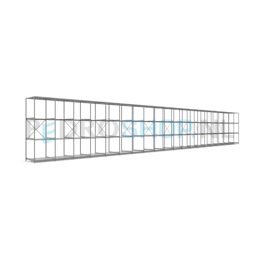 Metalen stellingkast: 300cm (h) x 100cm (d) x 2015.6cm (l)