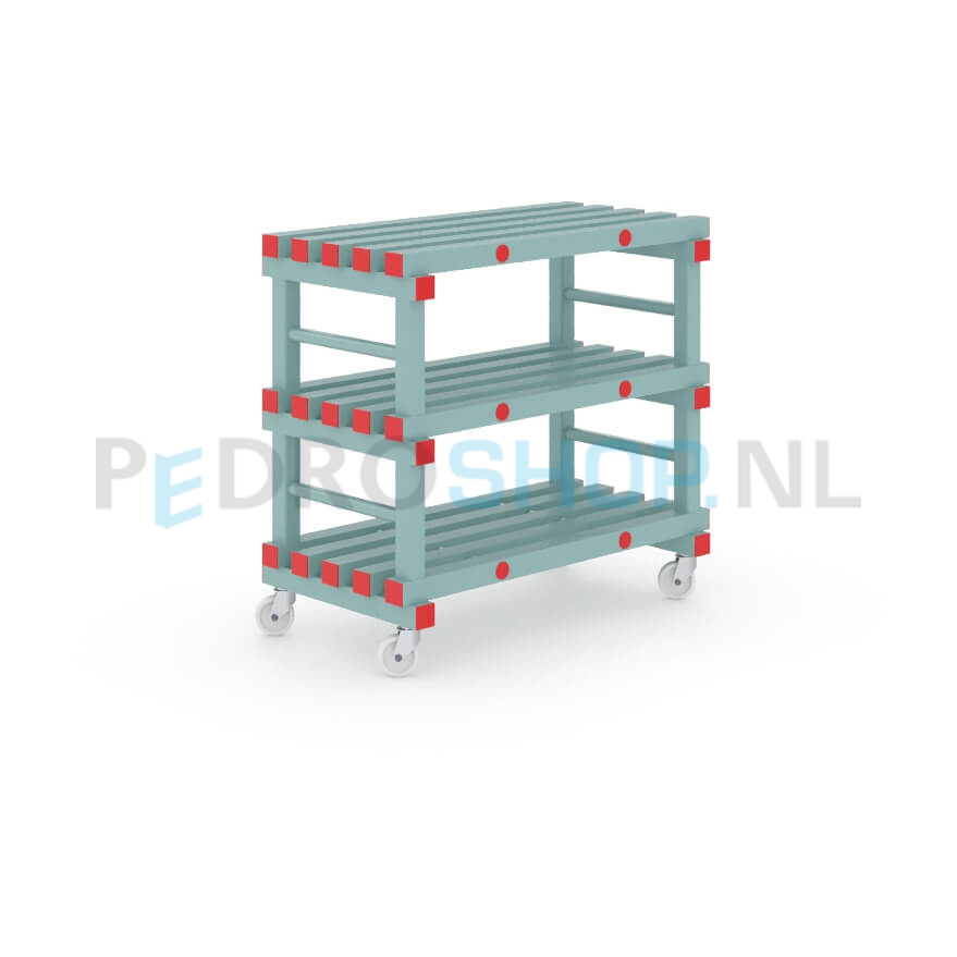 Kunststof stelling: 93cm (h) x 50cm (d) x 100cm (l)