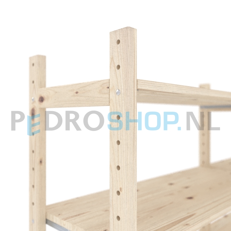 Eigen label houten stellingkast, dus goedkoop, flexibel en snel leverbaar! De onderdelen van de houten stellingen van ons eigen label zijn gemaakt van eersteklas Oost-Europees vurenhout en garanderen daarom jarenlang gebruiksgemak. Met de houten legbordstellingen en houten rekken kunt u uw magazijn eindeloos aanpassen, herinrichten en uitbreiden. U kiest voor betaalbare houten rekken, flexibiliteit met een goede kwaliteit! De houten stellingkast kunt u via onze handige configurator in een aantal stappen online samenstellen. Online uw houten stellingkast bestellen is nog nooit zo makkelijk geweest. Heeft u een groot archief in te richten met houten stellingen? Wij maken graag een passende offerte. Houten stelling kopen? Dan bent u bij ons aan het juiste adres.