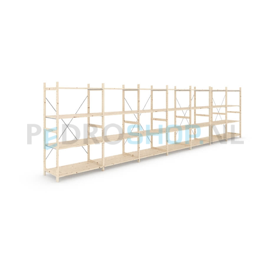 Houten stellingkast Easyrek: 180cm (h) x 60cm (d) x 703cm (l)