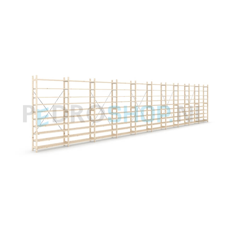 Houten stellingkast Easyrack: 210cm (h) x 30cm (d) x 1003cm (l)