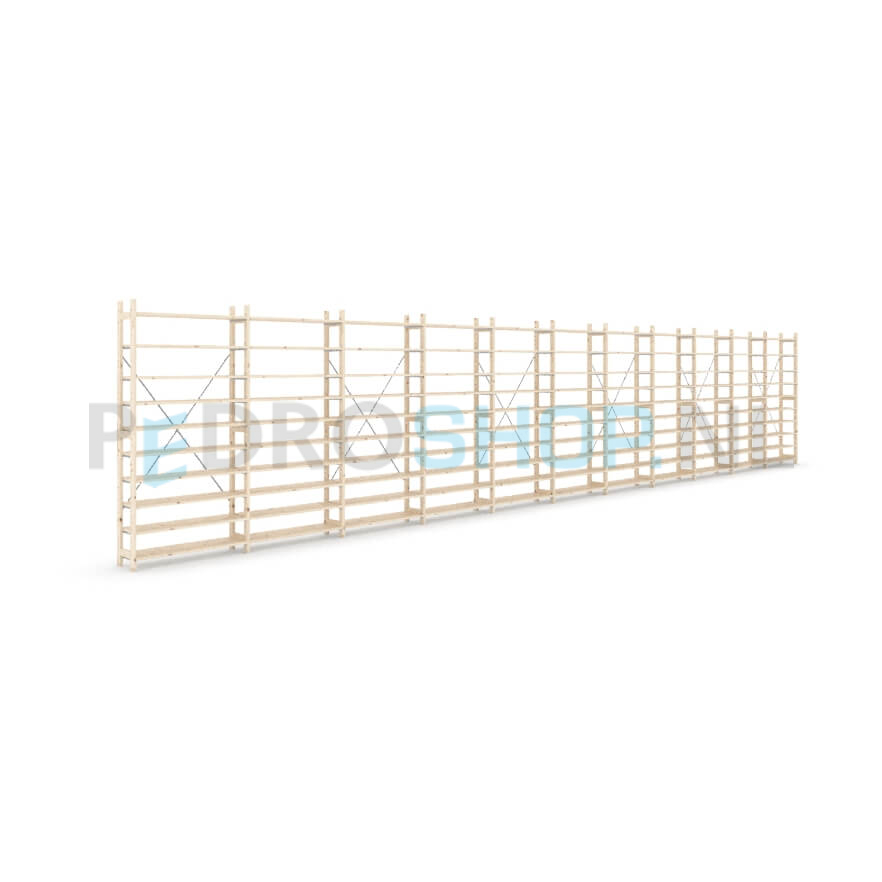 Houten stellingkast Easyrack: 210cm (h) x 30cm (d) x 1103cm (l)