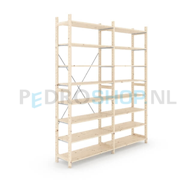Houten stellingkast Easyrack: 240cm (h) x 40cm (d) x 203cm (l)