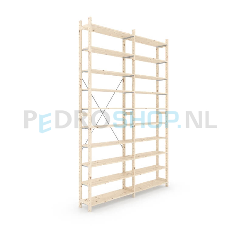 Houten stellingkast Easyrack: 300cm (h) x 30cm (d) x 203cm (l)